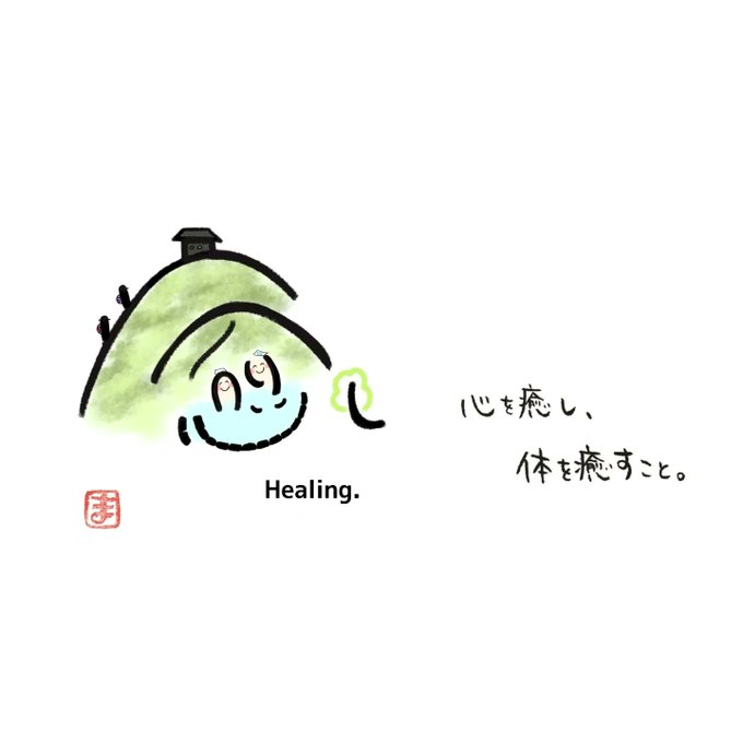 0 3 今日の感じ文字は「癒し」です。 頂上を目指して山を登る人、 温泉に入る人をイメージして描きました😃 「心を癒すこと。 体を癒すこと。」 が大切です😄 皆さんも、頑張り続けるために お休みも大切にしてくださいね😌 そしてまた頑張りましょう✨ #感じ文字 #癒し #メッセージ #イラスト 22/07/26 15:33