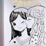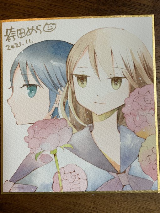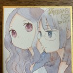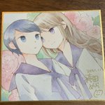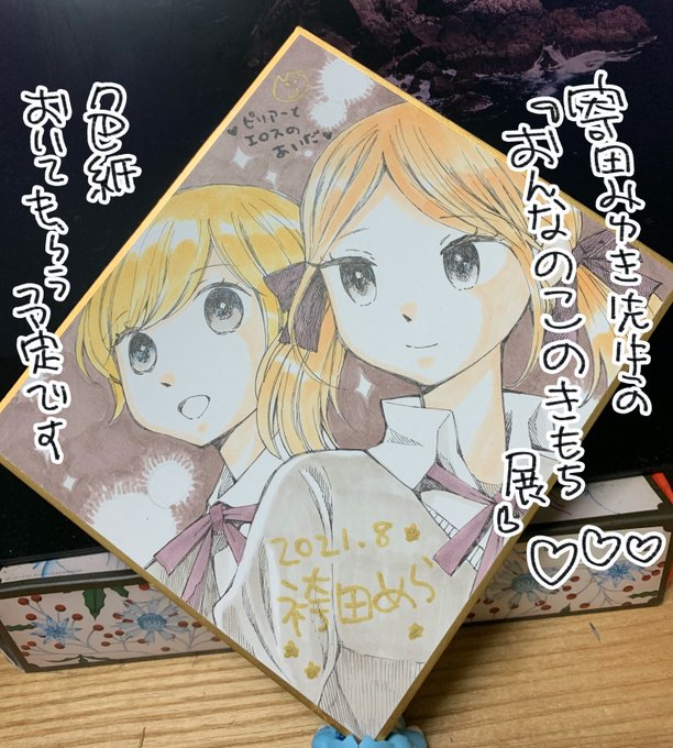寄田みゆき先生の「おんなのこのきもち展」に色紙を描かせてもらいました 会場で飾ってもらう予定なのでぜひとも!ピリアーとエロスのあいだのお二人描きました😍 twitter.com/yorimiyu/statu…