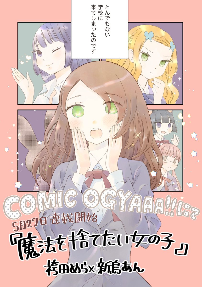 ホーム社さんのWEB漫画サイトCOMIC OGYAAA!!にて5/27から新連載「魔法を捨てたい女の子」(袴田めら×新島あん)が始まります!comic-ogyaaa.com/episode/327029…… 不思議な島のとある学園で女の子がいっぱい出てきてわーきゃーする漫画です #まほすて