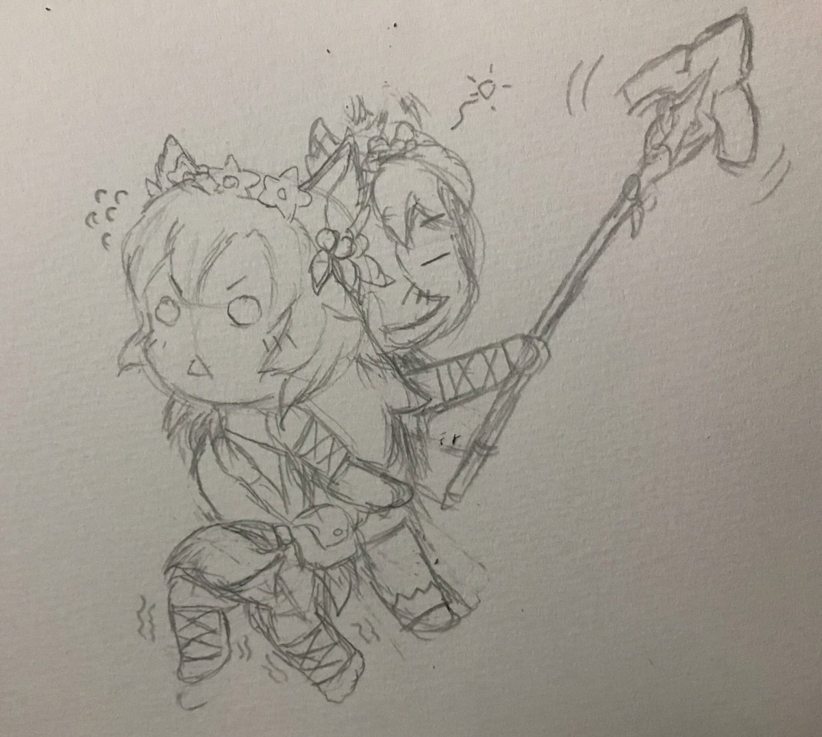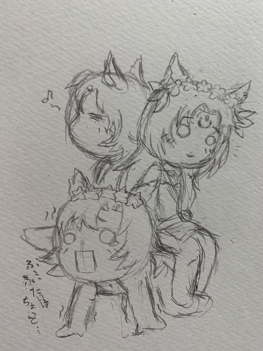 1 2 #グラブルファンアート ペンネーム:にわとりの着ぐるみ 色塗り下手なのでモノクロで失礼します。 大好きなメルゥ三姉妹のシナリオ、堪能させて頂きました。本当にありがとうございます。 2枚目は二年前に冗談半分で描いたもの。まさかシナリオで似たようなことが起こるとは思ってもみませんでした。 20/12/13 02:05