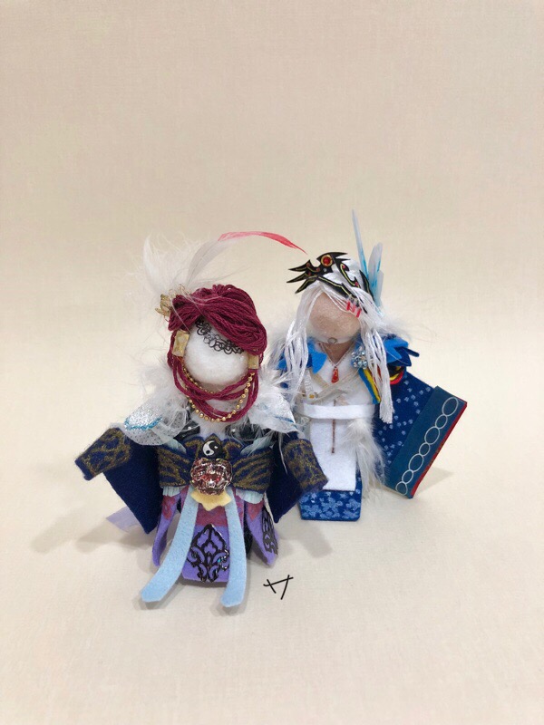 結局撮影場所の都合で2段しかできなくて...。(訳:散らかってんの) いろいろ撮ってはみたけど、選べずにとりあえず西幽verと東離verにしてみた。 あとはおまけの究極ver✨ #ひな壇 #サンファンアート #指人形