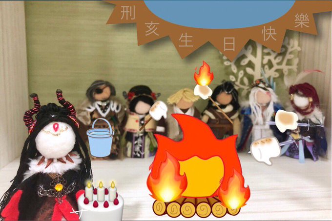 まさか2日連続の公式さんパロディ…。 姐さん主役なので後ろボケ🤣 #刑亥生誕祭2020 #刑亥生日快樂2020 #サンファンアート #指人形