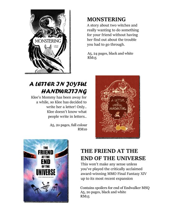 i made a preorder form if anyone attending CF2022 would like to preorder books old and new: forms.gle/TmE5RtxqFAU9qU… i have no idea how forms work so bear with me. will twt / rt individual book previews here for the curious