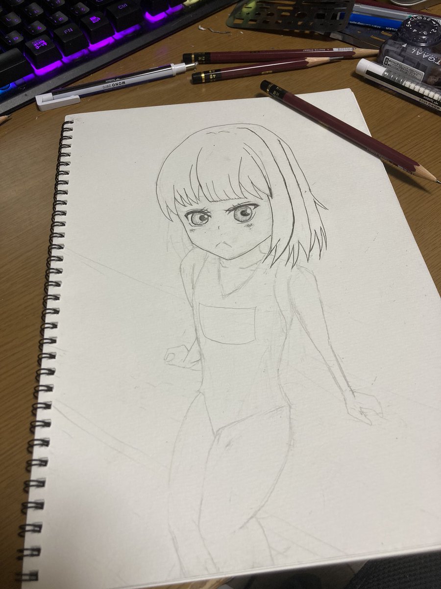 1 0 30日目11月15日目 消しゴムを擬人化した女の子のデザインは決定、そして後は描き起こすだけ!なのにやる気が出ず落書きをしてしまう日々。 結局形は描けたもののって感じ。 今日は寝ないで描きますかぁ、、、 #アニメーター志望 #イラスト #イラストレーター #漫画家 22/11/16 00:23