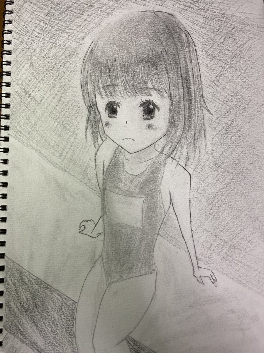 0 2 プールサイドに腰掛ける女子小学生 #鉛筆画 #イラスト #イラストレーター #js 22/11/03 02:05