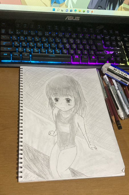 0 5 16日目11/1 プールサイドに腰掛ける女子小学生(性癖)の描いてる最中っすね〜。 目で悩みすぎて残像がすごいことになってきました。 #イラスト #イラストレーター #漫画家志望 22/11/02 03:03