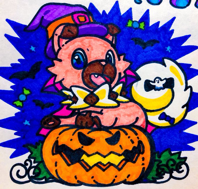 #Inktober Day 30: Favorite Pokémon. Already drew most of my favs, so here’s the next in line: the goodest spooky boy. 🎃💜 #Poketober #Pokemon #Rockruff #Halloween #Spooky #Jackolanterns #Doggo #Pupper #Dog #GoodBoy #Puppy