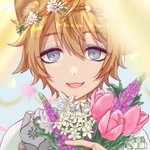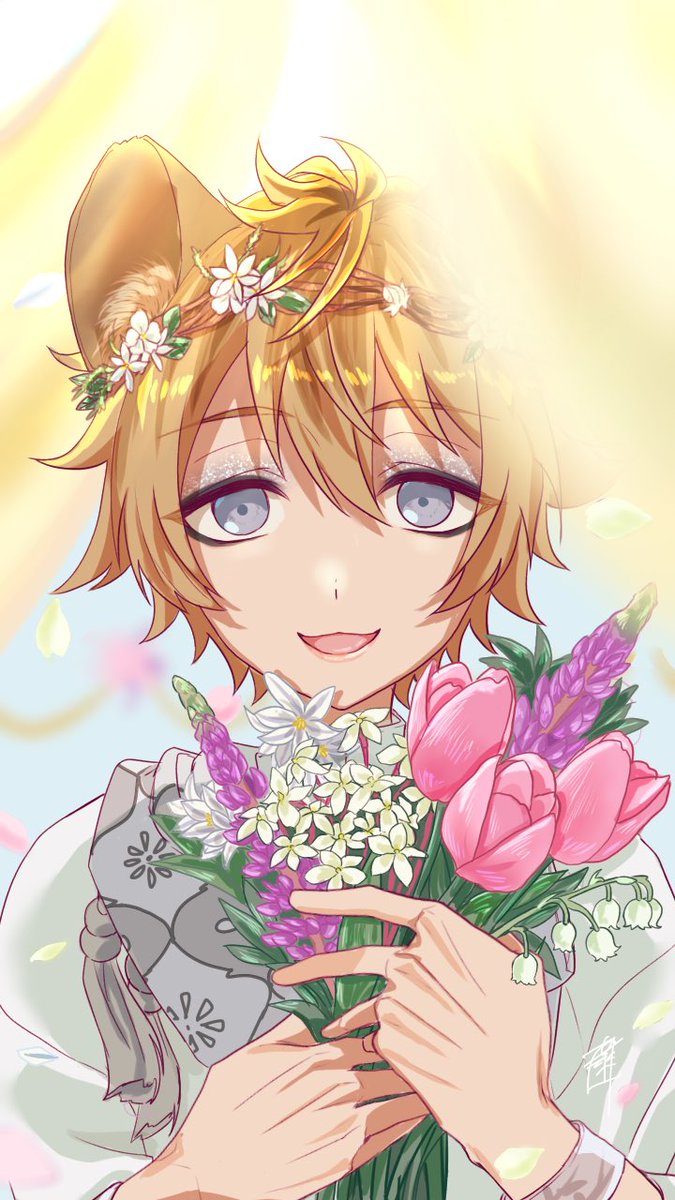 フェアリーガラのラギーくん 初めてにしては上手く描けたんじゃないでしょうか。春の花をいっぱい集めました #twstファンアート #twst絵描きさんと繋がりたい