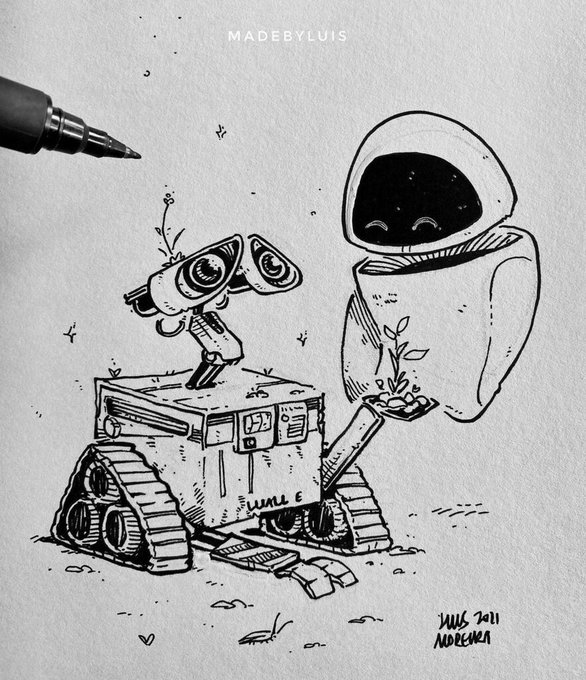 One of my favorite #pixar #movies #moviefanart ☺️ #cute lil #kawaii #walle and #eve . . . . . #inktober #inktober 2020 #inktober2021 #sketchbook #inkdrawings #nofilter #penandink #penandinkdrawing #penandinkart #penandinkartt #sketchbook #blackw… ift.tt/3CSxBTj