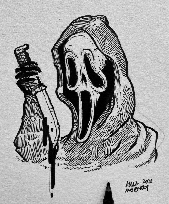 Fastest drawing ever 🔥🔥🔥🔥omg XD #inktober is killing me this year 🔥 well … here’s a new #horrormovie #fanart 🎃 #halloween #halloweencostume . . . . #inktober #inktober 2020 #inktober2021 #scream #sketchbook #inkdrawings #nofilter #penan… ift.tt/3AmzndE