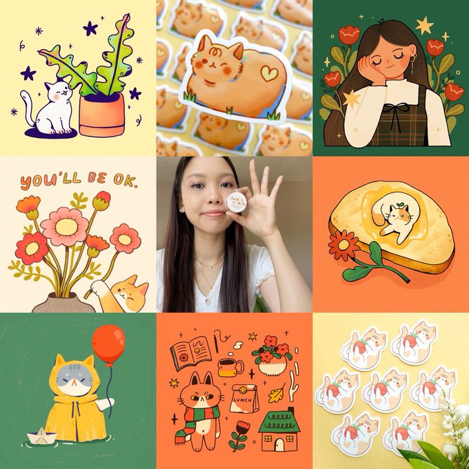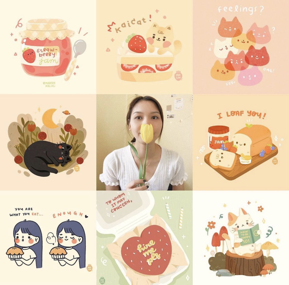 Happy #PortfolioDay ! My name is Malin and I am a Thai artist based in Boston, MA 🍁🍂 I like to draw flowers, cats, cute objects and I love to advocate for mental health! My shop is currently closed but you can check out my other socials here: linktr.ee/madebymalin 🧡