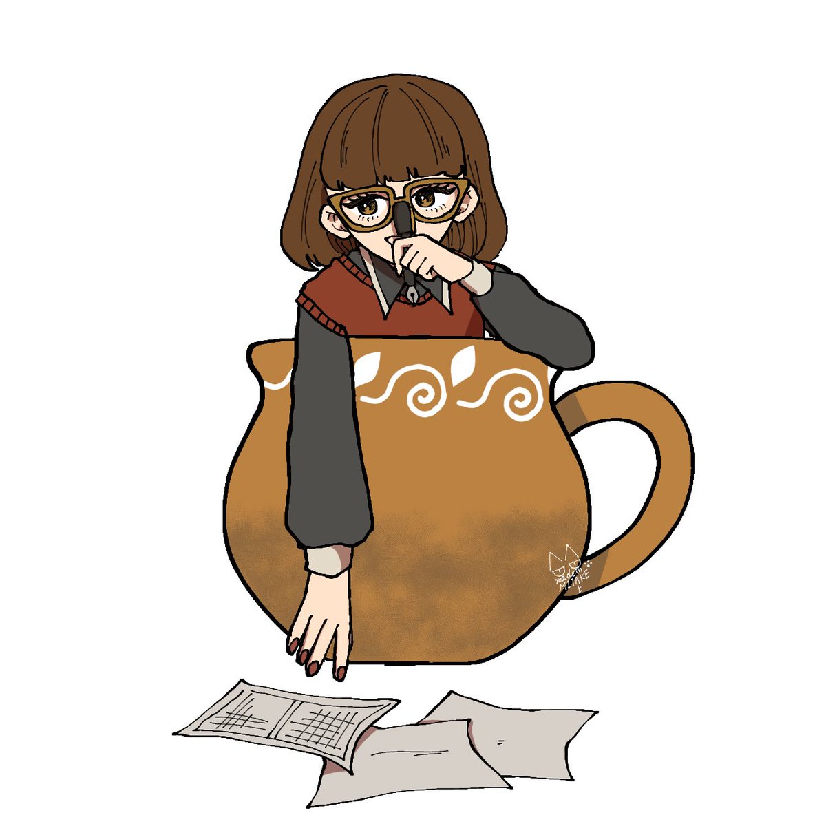 『コーヒーと思案』 #イラスト #illustraion