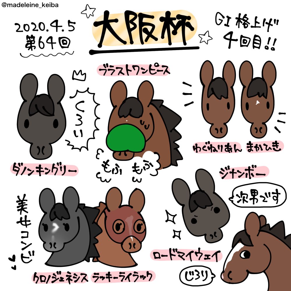 96 328 #大阪杯 みんな仲良し!たのしいね!という出走馬たち応援らくがきです〜🐴✨ (唐突に思いついて描いたから雑だけど1時間半でこれなら上出来かしら……😂) 20/04/04 20:56