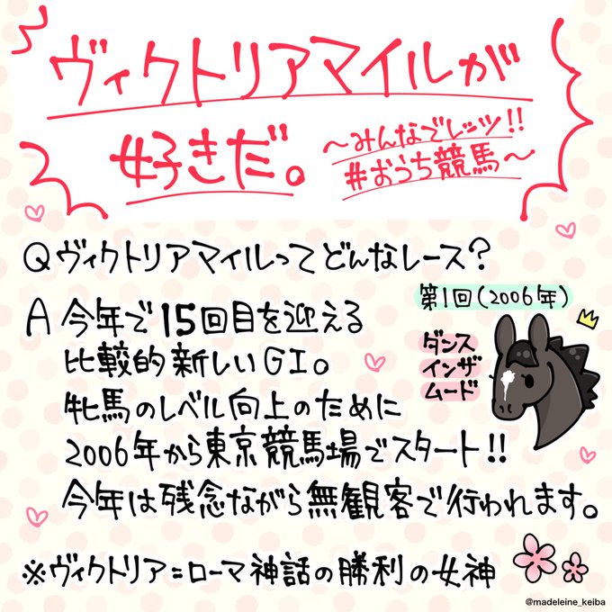 392 1338 ヴィクトリアマイルが大好きすぎるので、その素晴らしさを今年の出走馬とともに紹介してみました〜!🌸よろしければ隅々までご覧くださいませ🙏✨ #ヴィクトリアマイル #おうち競馬 20/05/15 20:55