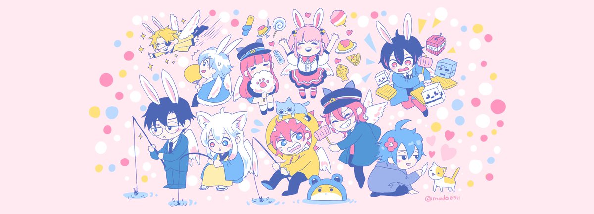 きのうあげた前川郷散策 くーにゃん猫耳追加、 なおきりさん頭の花に変更 で色彩 微調整しました⭐️ サムネサイズと ヘッダーサイズです〜 需要あればご利用ください🙏💚 #からぴち #カラフルピーチ素材 #マイクラ肝試し2021