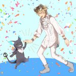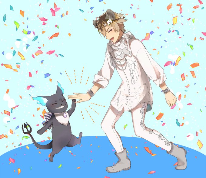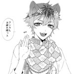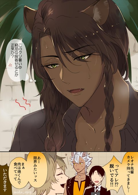 カードイラストですでに脱ぎかけなのが面白かったので間に合わなかったパターンを描きました。 祝い感ゼロになっちゃった。おめでとう~~いっぱい肉を食べてください! #レオナ・キングスカラー誕生祭2021 #おじ誕