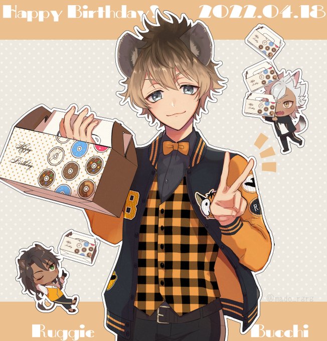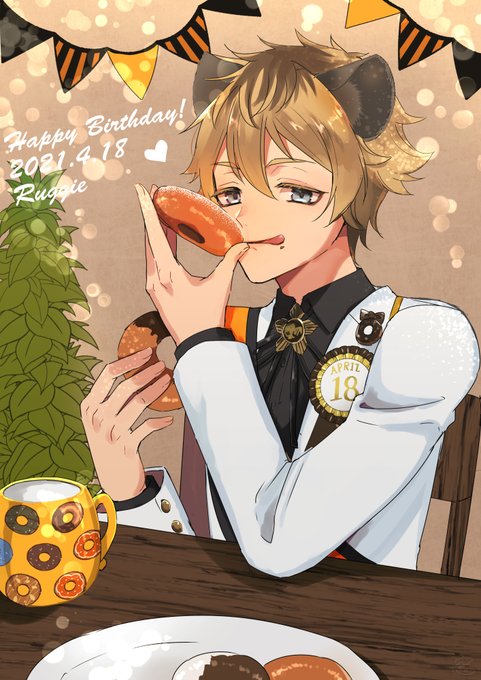 プレゼント(貢物)に迷ったらドーナツ箱買いが安定らしい。 おめでとうございます!🍩🍩🍩いっぱい食べろ~! #ラギー・ブッチ生誕祭2022 #ラギー・ブッチ誕生祭2022 #ツイステファンアート