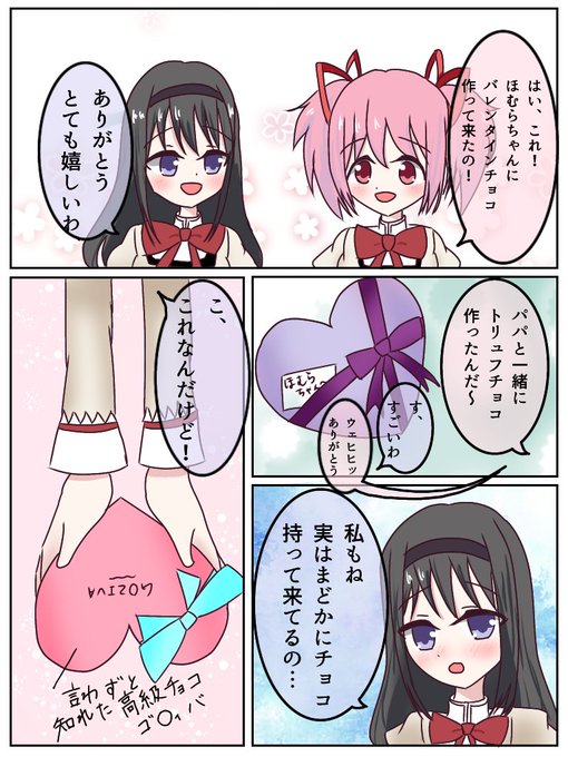 まどほむが、 チョコより甘いという漫画です🍫💓 一年以上前に描いたものなので稚拙ですが良ければ読んでみてください (くーほむのキャラ崩壊注意⚠️) #まどマギ #マギレコ #絵描きさんと繋がりたい