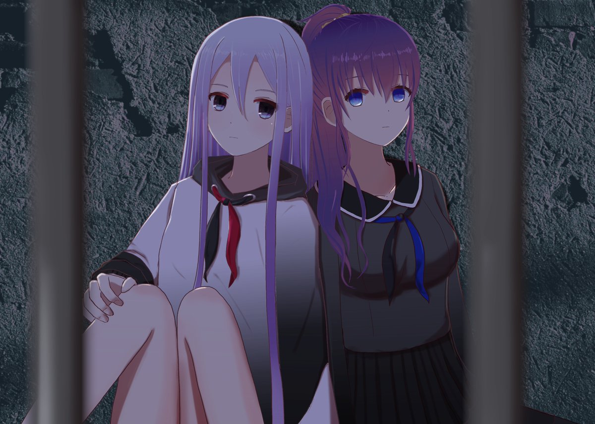 ジャケ写っぽいイメージでかなまふ。この2人牢獄似合いすぎないですか。 #朝比奈まふゆ #宵崎奏 #prsk_FA