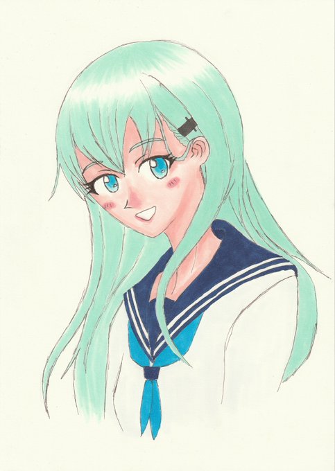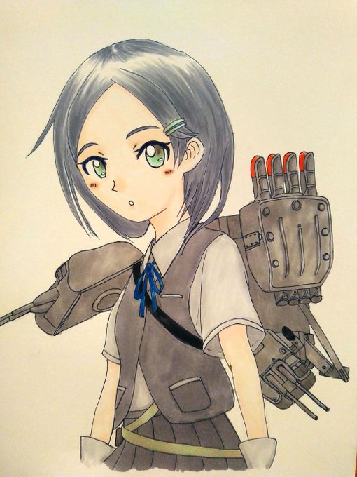 すみません、25分オーバーなうえにお顔が汚れてしまいました。やはりゆっくり描くことにします・・・ #艦これ版深夜の真剣お絵描き60分一本勝負 #艦これ版真剣お絵描き60分一本勝負_20230305 #夕張進水日