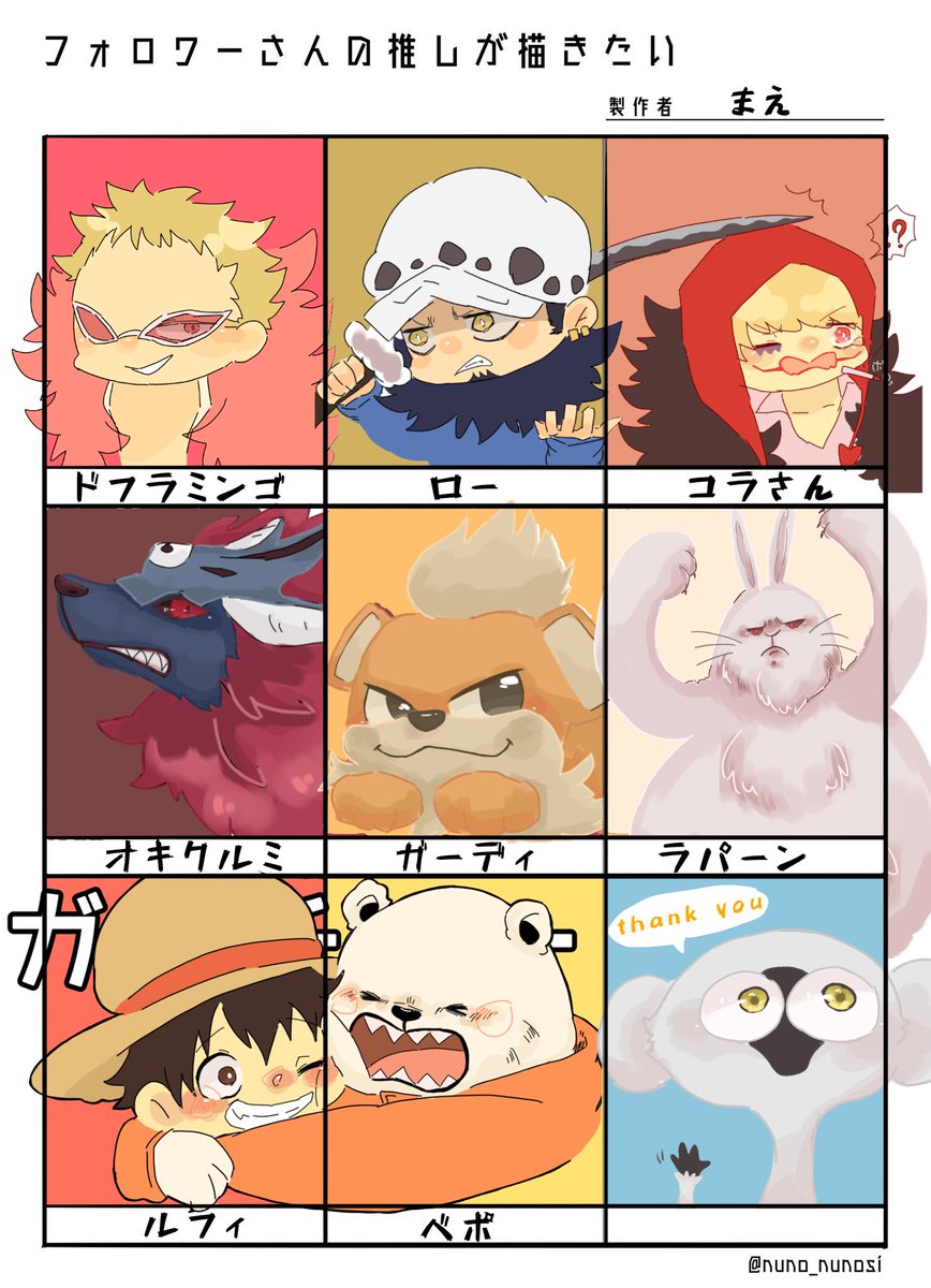 #フォロワーさんの推しが描きたい リプありがとうございました〜🙌 普段描き慣れないキャラや知らないキャラも描けて楽しかったです〜☺️
