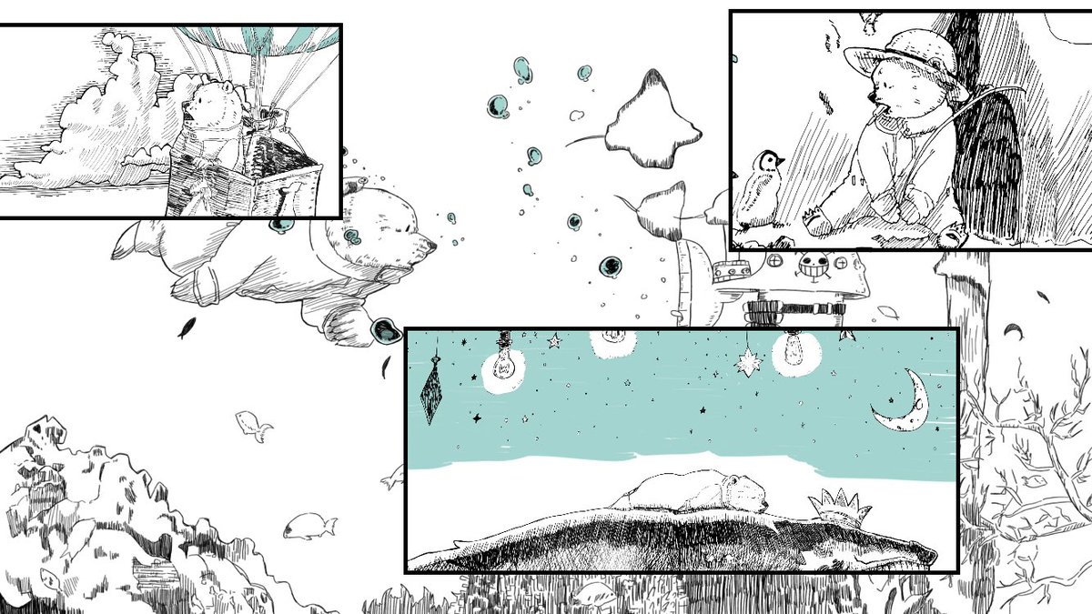 23 112 いろちゃんからの誕生日イラストから広がった絵です メッセンジャーボトルから広がるベポの不思議な世界 21/08/15 13:59