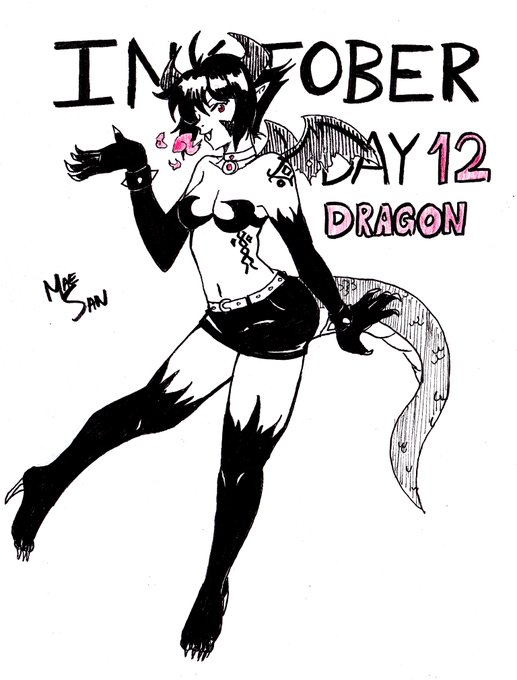 Inktober Day 12: Dragon Didn't want to draw a big dragon so here's a dragon girl. #Inktober #Inktober2019