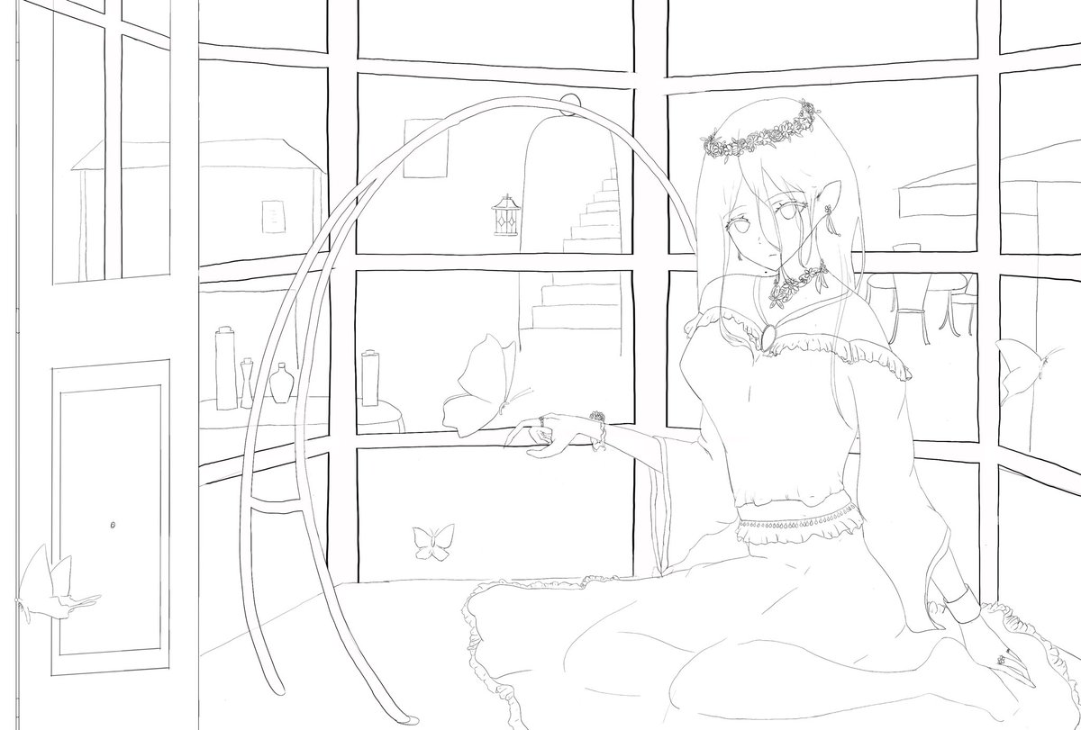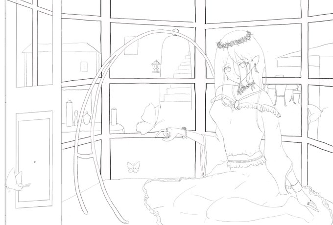 下書きです 草花は後描きの予定です #illustration #オリジナルイラスト #イラスト #イラスト練習 #創作イラスト #創作 #イラスト好きな人と繋がりたい #イラスト好きと繋がりたい #絵描きさんと繋がりたい #アイビス #アイビスペイント