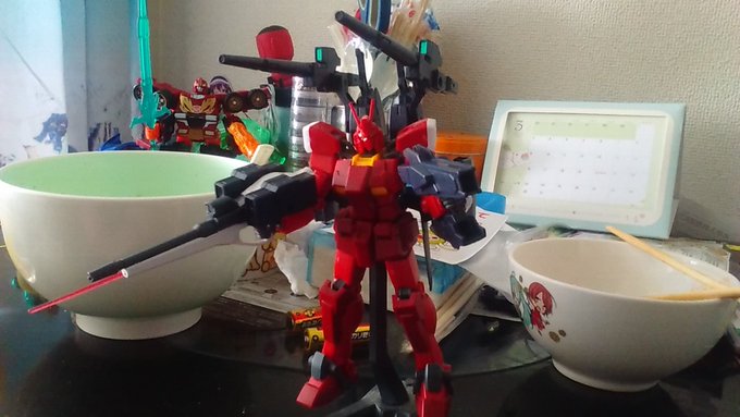 そして、そこからアーマーを取り付けて、ナイトストライクガンダムの完成です(*´ω`*)。 結構格好いいです(*´ω`*)。 おいら、ガンプラを始めたきっかけもナイトガンダムからなので、なお一層愛着がわきますです(*´ω`*)。 #ガンプラ twitter.com/kagatosan/stat…