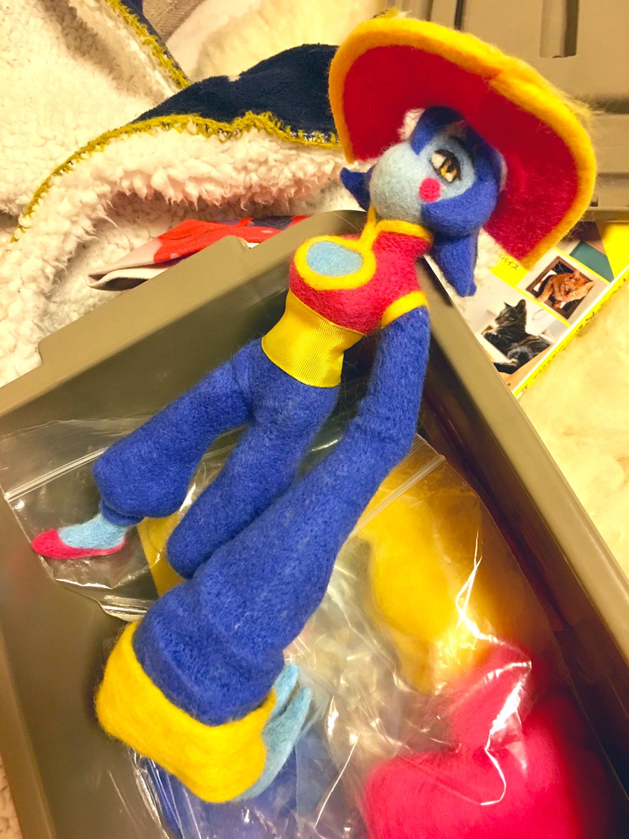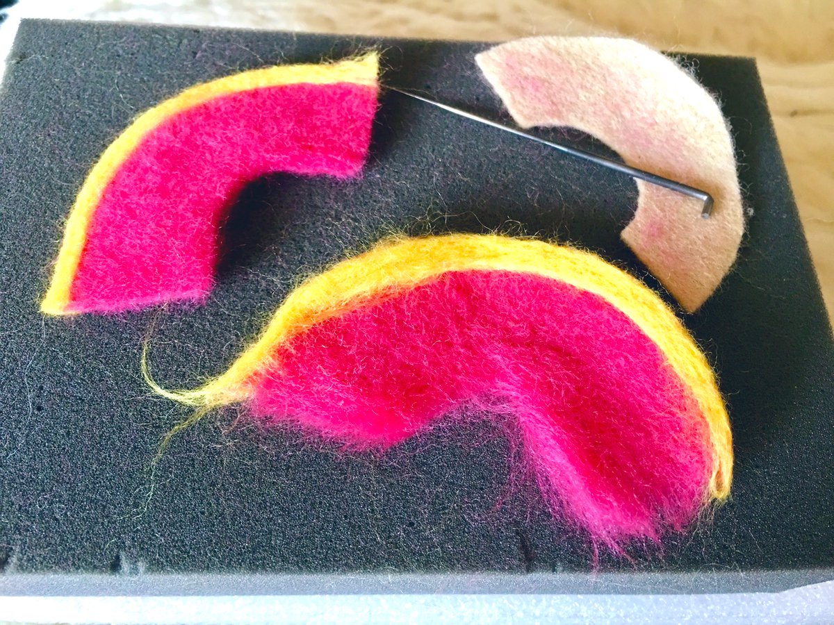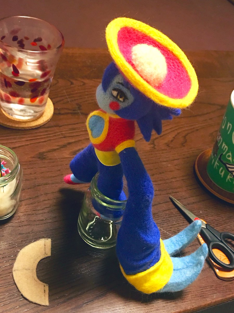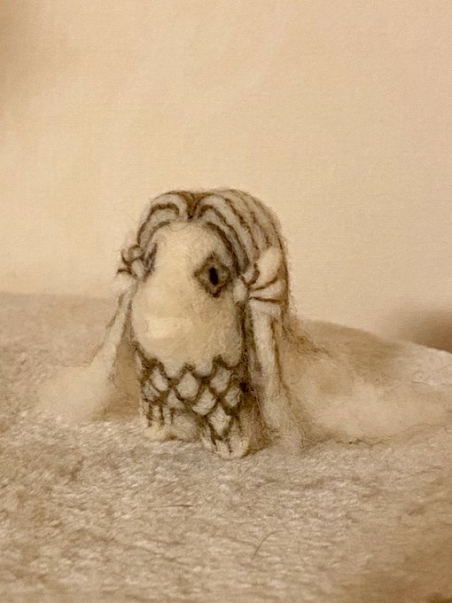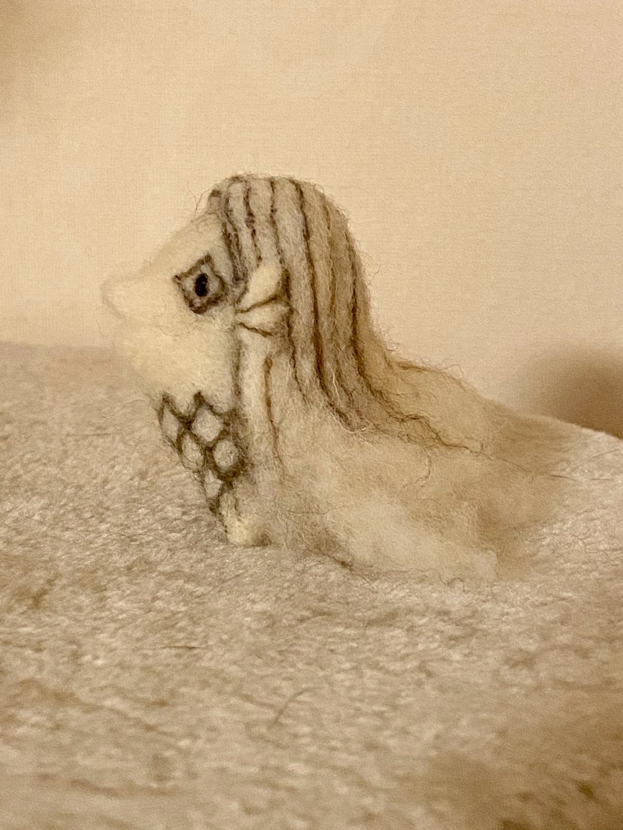 アマビエったった。土台用の粗い羊毛でザカザカ