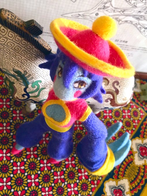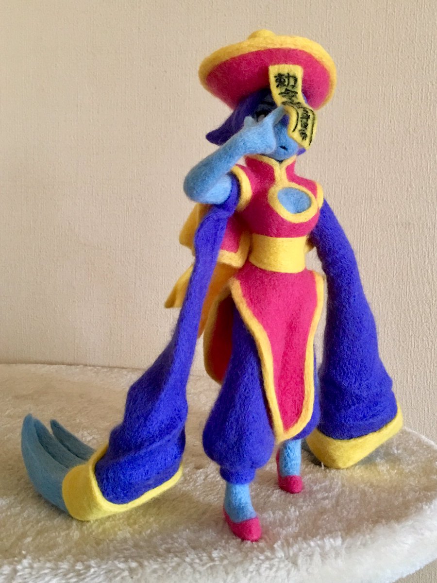 レイレイ完成。羊毛フェルトのもふもふフィギュア、略してもふィギュア?腰のリボンとお札には銅線入れてみました