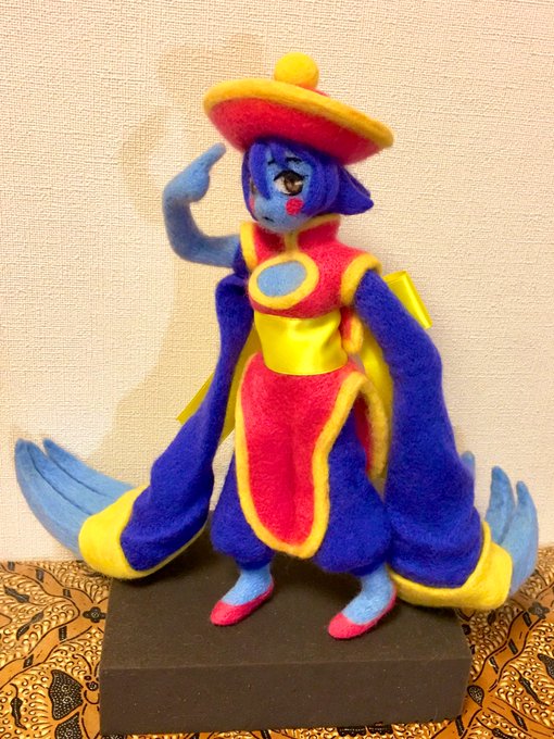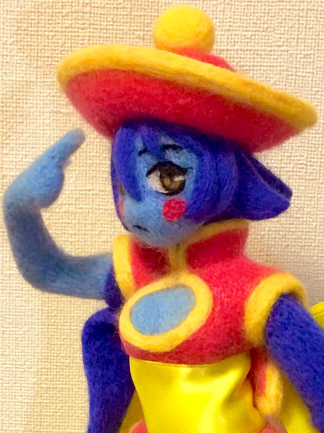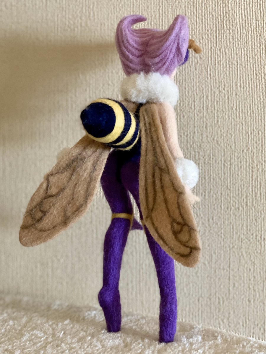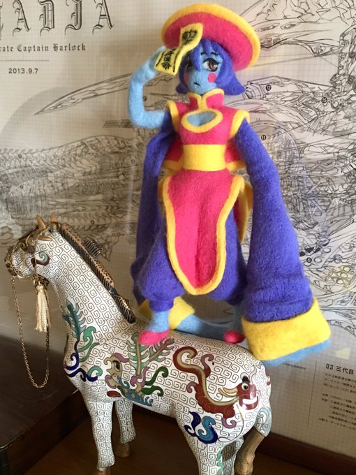 88 149 レイレイ完成。羊毛フェルトのもふもふフィギュア、略してもふィギュア?腰のリボンとお札には銅線入れてみました 19/09/14 12:14