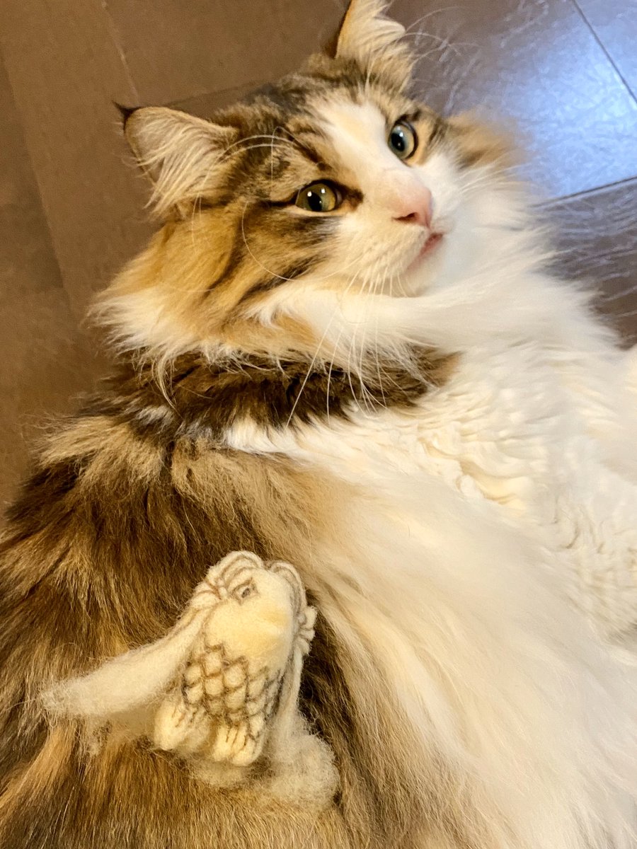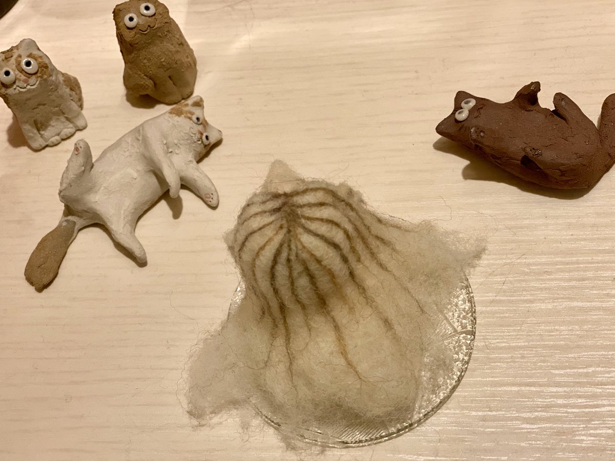 44 182 アマビエったった。土台用の粗い羊毛でザカザカ 20/04/05 23:45