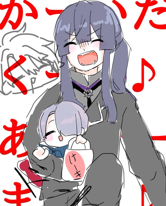 #桜魔の土産 #描いた晴 #長尾百景 #上弦画 「「おかえり!!」」