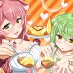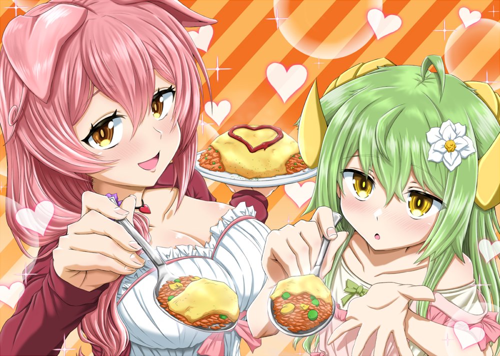 Skebのご依頼で「モン娘☆は~れむ」のあさつきちゃんとスウィルさんが二人でオムライスをあーんしてくれるイラストを描きました!身長差があるだろうと思ってそこらへんも意識しつつの構図にしてみました! skeb.jp/@mafuyu_tora/w… #モンはれ