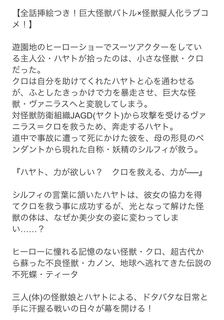 #作品を載せて自分の作品を知ってもらおう オリジナル怪獣と一緒にその擬人化もデザインして自給自足してます。 ついでに本編もあります↓ novelup.plus/story/885470143