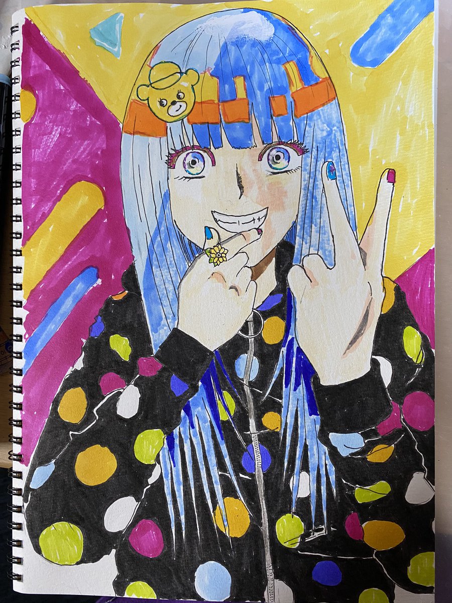 0 5 ポップな女の子 楽しく描きました🤗 #イラスト #オリジナルイラスト #絵描き好き #創作 #アナログイラスト 22/10/02 10:12