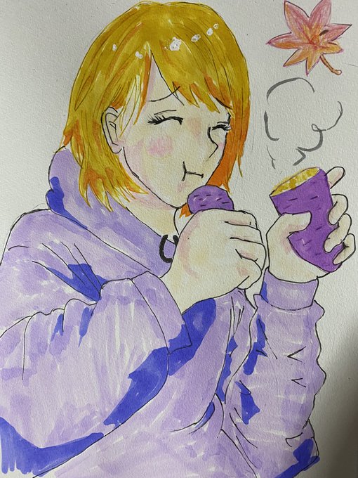 3 21 焼き芋 美味しそう #イラスト #イラスト練習中 #イラスト好きさんと繋がりたい #女の子イラスト #秋 #秋イラスト 22/10/11 15:59
