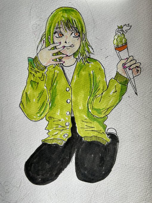 1 5 クレープ食べる女の子🍦 #オリジナルイラスト #アナログ画 23/04/11 10:42
