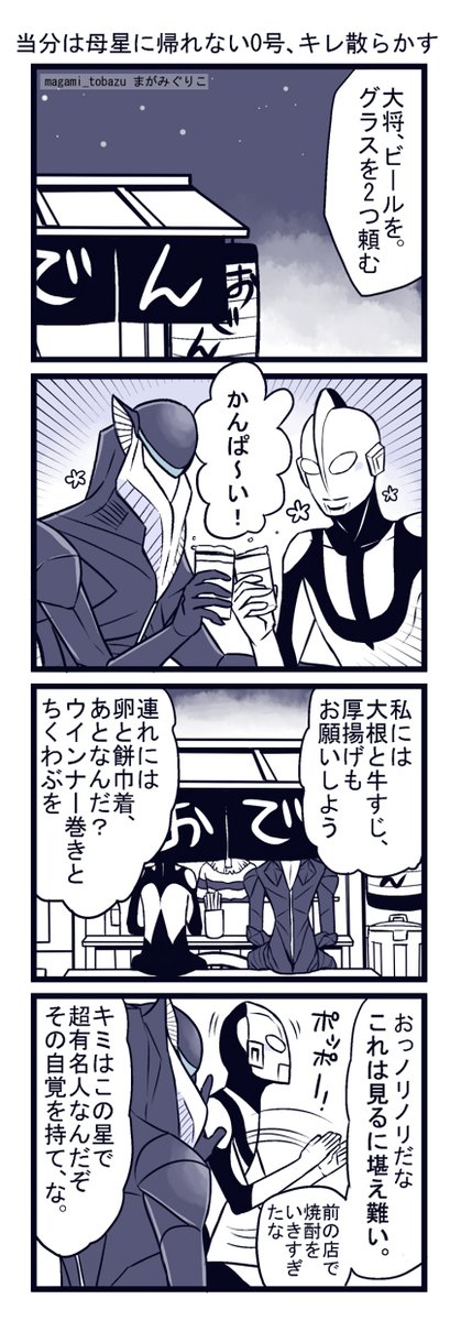 はしご酒で出来上がってる0号と1号の正月三が日(リプ欄に続く