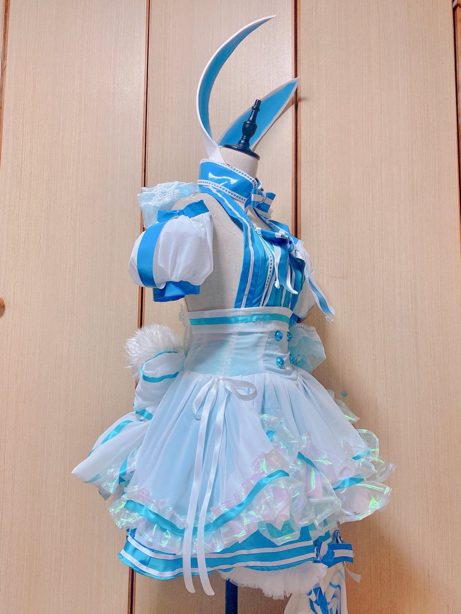 ⚠︎再臨バレ アルキャス第二再臨の衣装作りました🐇アリスみたいなバニー姿とてもかわいいですね……!!!!!せっかくの水着霊衣なのでフワッと夏らしい透け感を意識したシフォン生地で作りました!!かわいい!! #曲崎さん進捗いかがですか