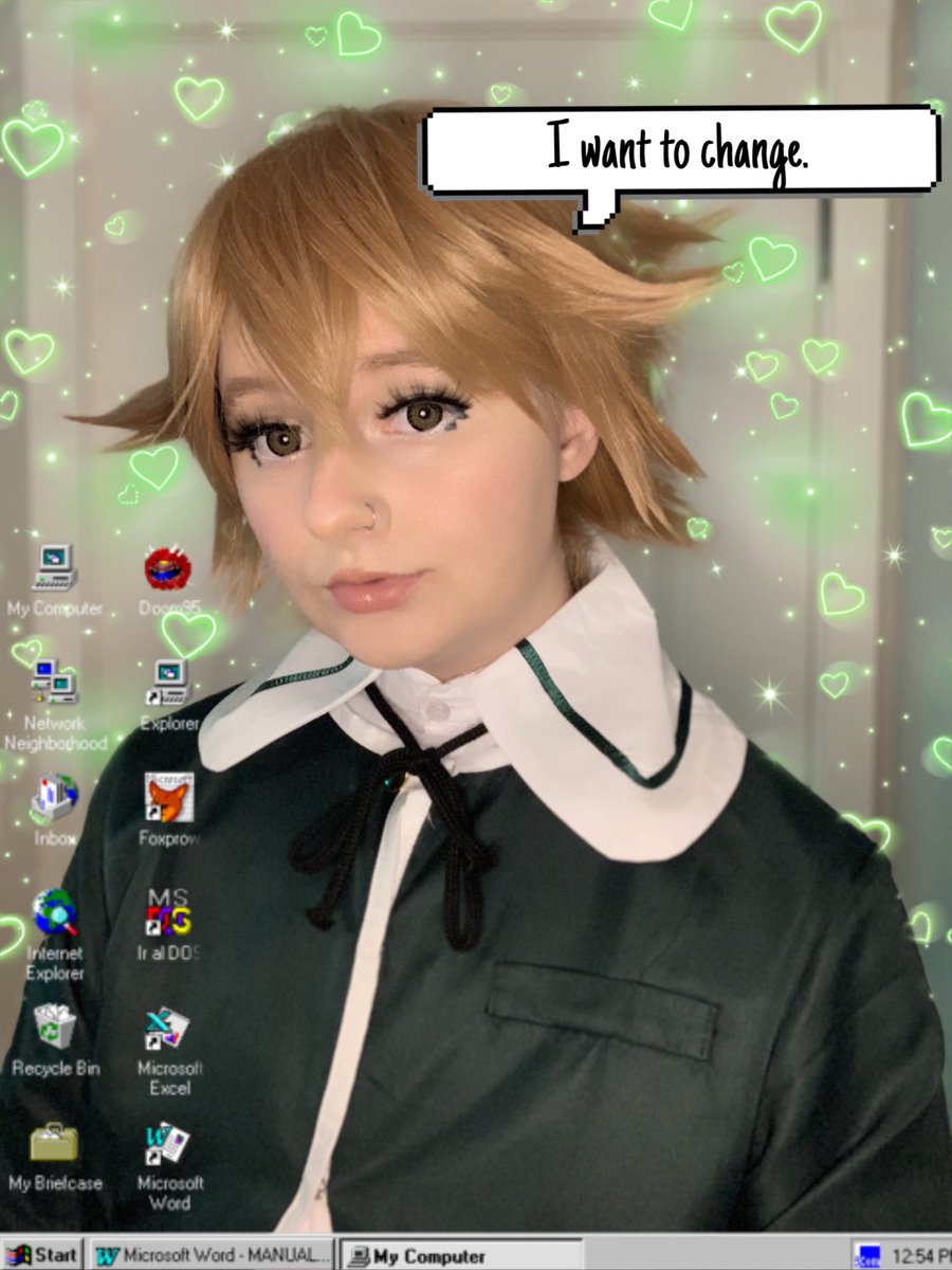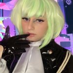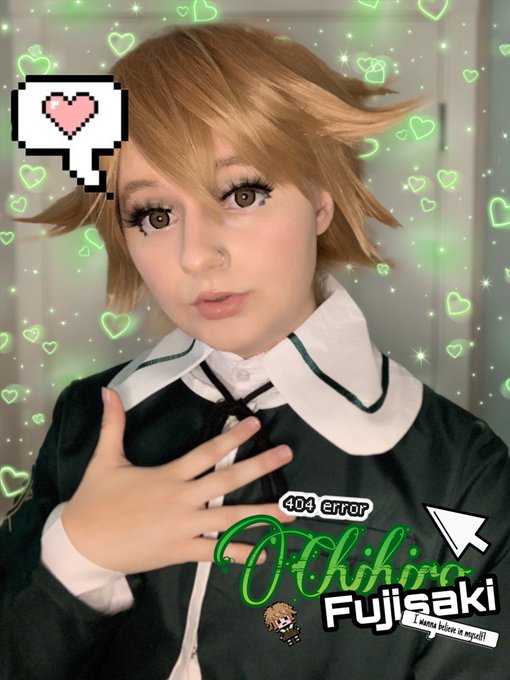 I’m gonna edit my photos more tomorrow bc I’m sleeby but... Look at my new cosplay!!!! 💻💚 #danganronpa #chihirofujisaki #cosplay