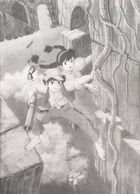今日は日テレで #天空の城ラピュタ 放送ですね! シーター!パズー! d( =•`ω< ) #ジブリ #模写 #シャーペン画 #アナログ絵 #絵描きさんと繋がりたい #アナログ絵師さんと繋がりたい #アナログ絵描きさんと繋がりたい #イラスト好きさんと繋がりたい #イラスト王国 #イラスト基地 #絵師の集い