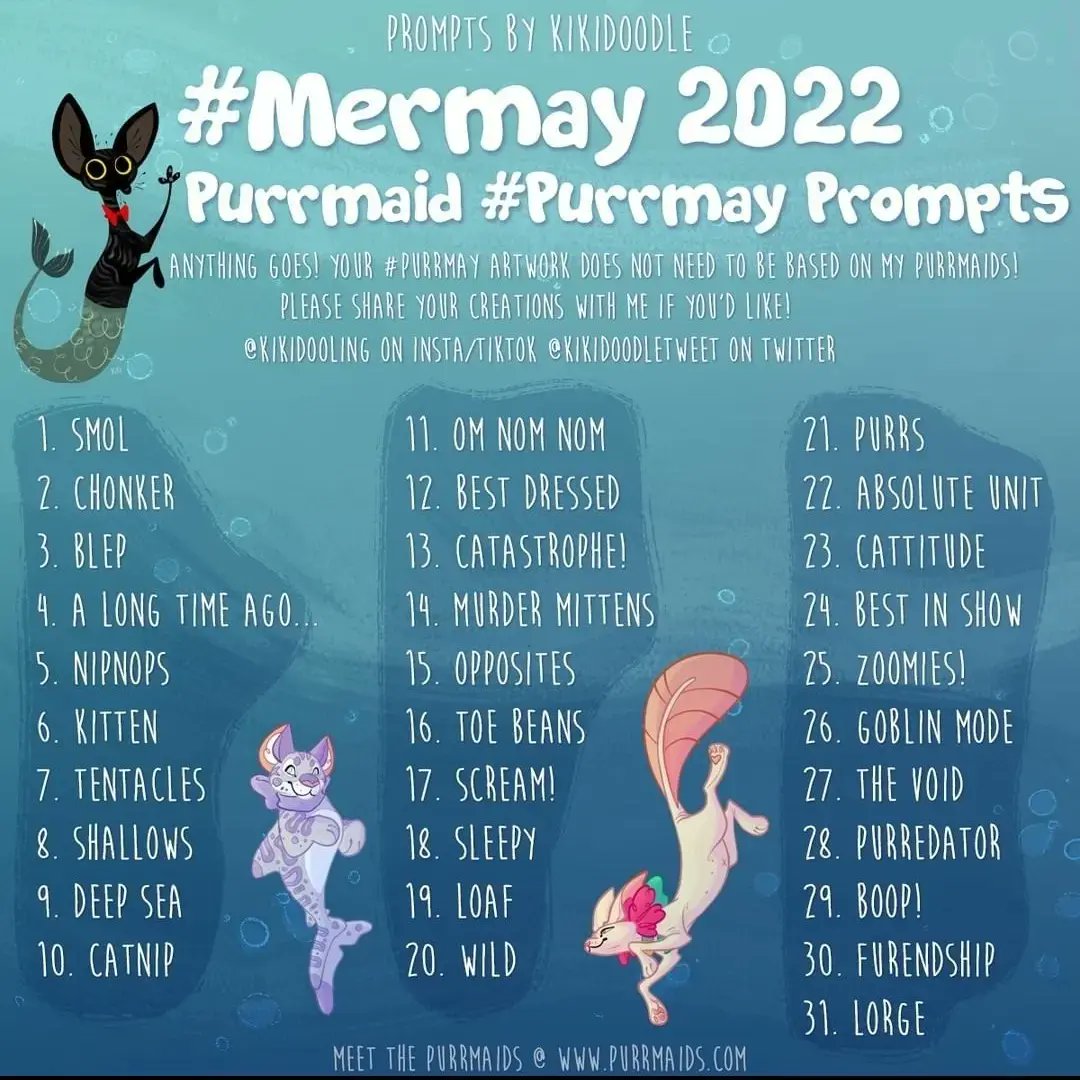 Day six: kitten Fun fact, my favorite animals are foxes and this is a fennec fox. Fox babies are often called kits and this fox kit happens to be half squid and going up for some air. #Purrmay #mermay2022