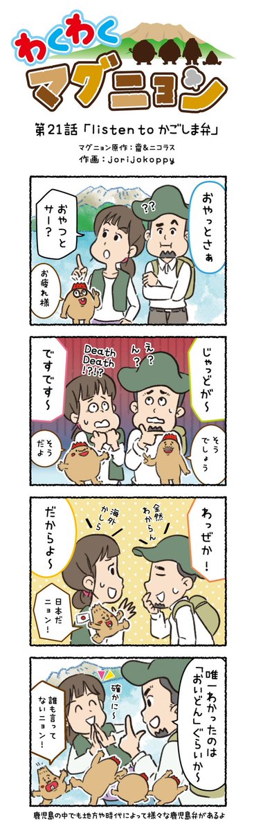 今回の4コマ漫画はイーファさんが 応募してくれたテーマだよ👏✨ 第21話:listen to かごしま弁 鹿児島弁と一口に言っても 無意識に使ってるものもあれば 意味は分かるけど使わないものも😌 地域や年代によっても いろんな違いがあるよ🌟 #マグニョン #漫画が読めるハッシュタグ #4コマ漫画