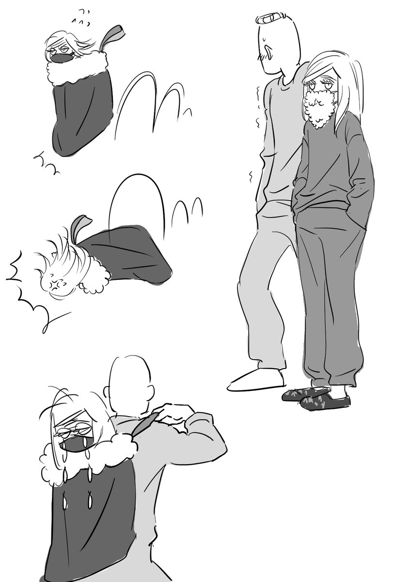 膝で寝ていたら頭を肘置きにされるヒラ隊員
