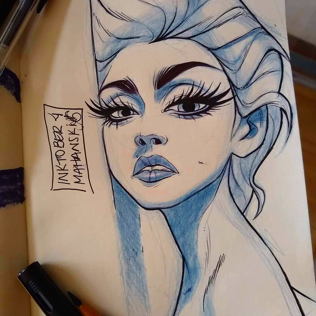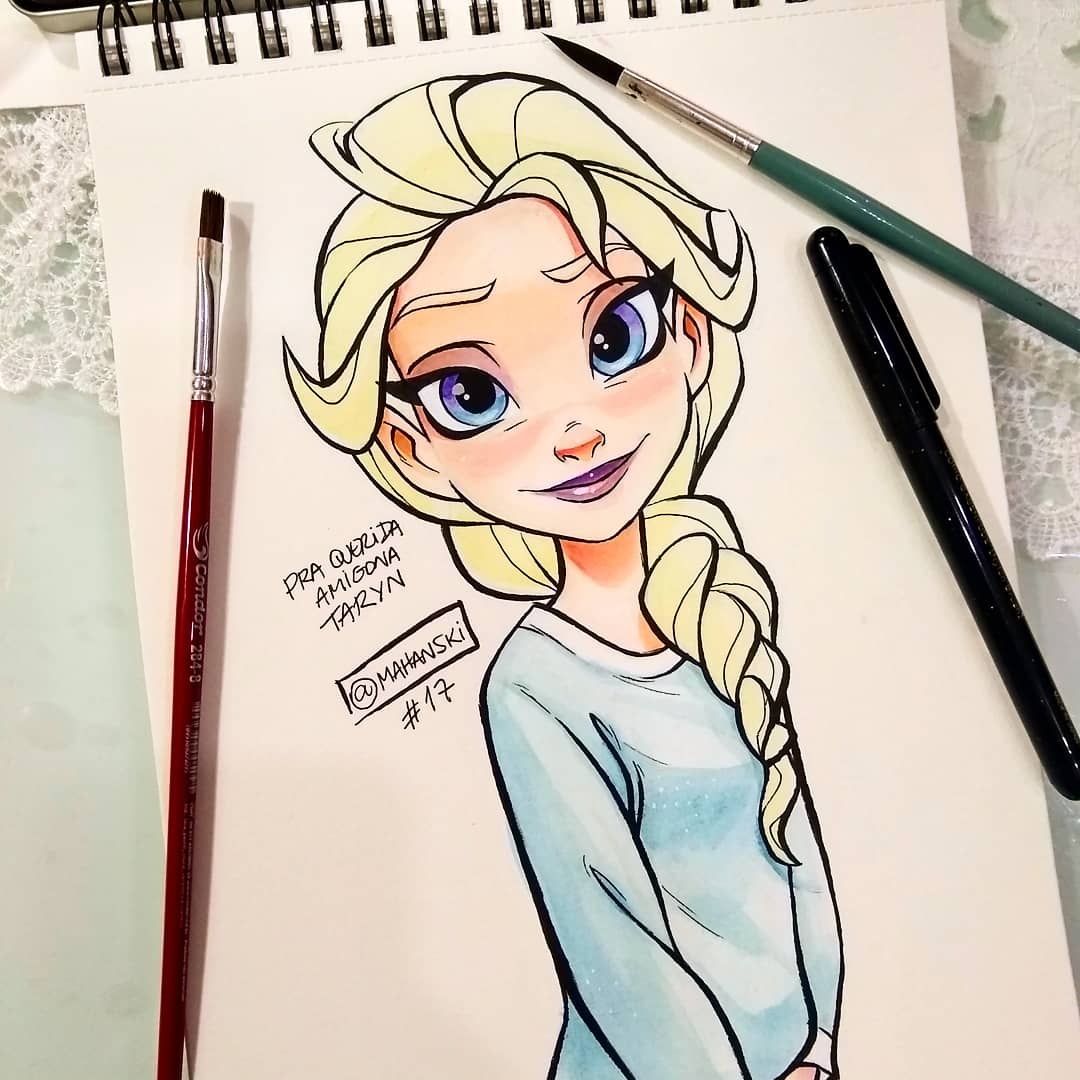 Elsa versão Detona Ralph 2. Presente pra minha querida amiga @taryn_oficial , a dubladora da Elsa aqui no Brasil! #inktoberday17 #Inktober2019 #inktoberbrasil #Elsa #disneyprincess #Disney #watercolor #tradicionalart