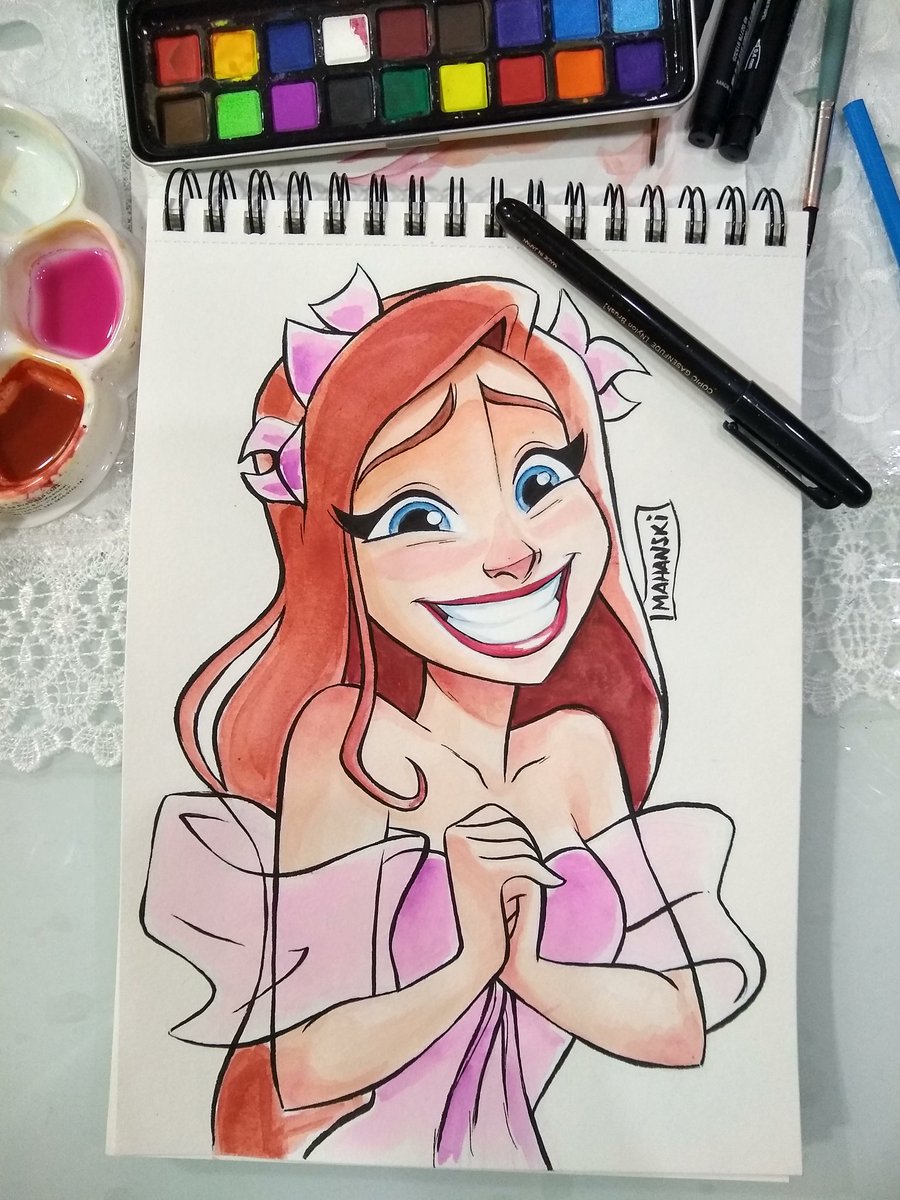 Princesa Giselle / Encantada. #disneyprincess #inktoberday27 #inktoberbrasil #Inktober2019 #princess #Disney #enchanted #watercolor #tradicionalart #mahanski