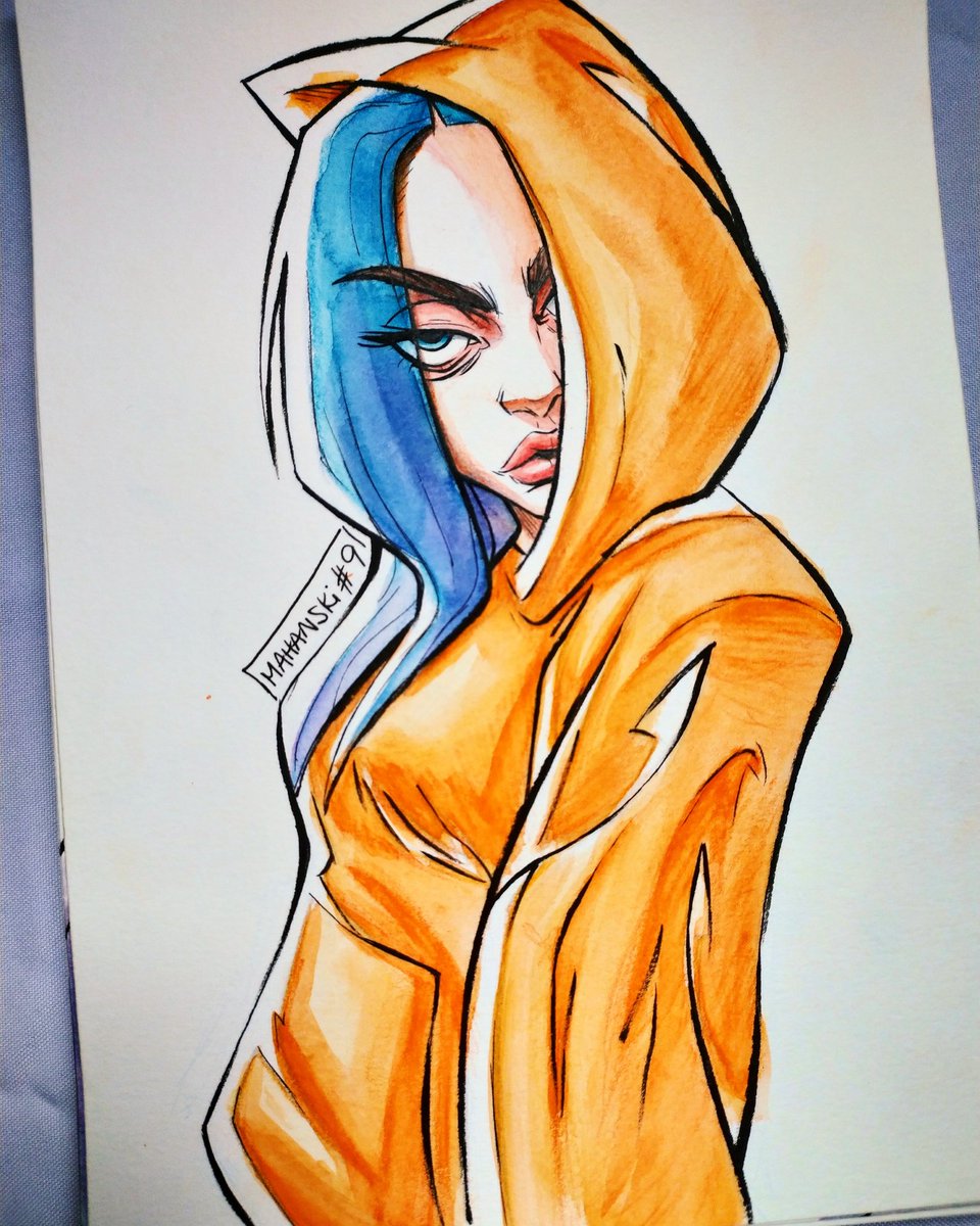 Não é dia de tbt, mas segue a Billie Eilish que fiz no inktober do ano passado! PS: já tô esquentando os motores pro desse ano. #Inktober #inktober2020 #BillieEilish