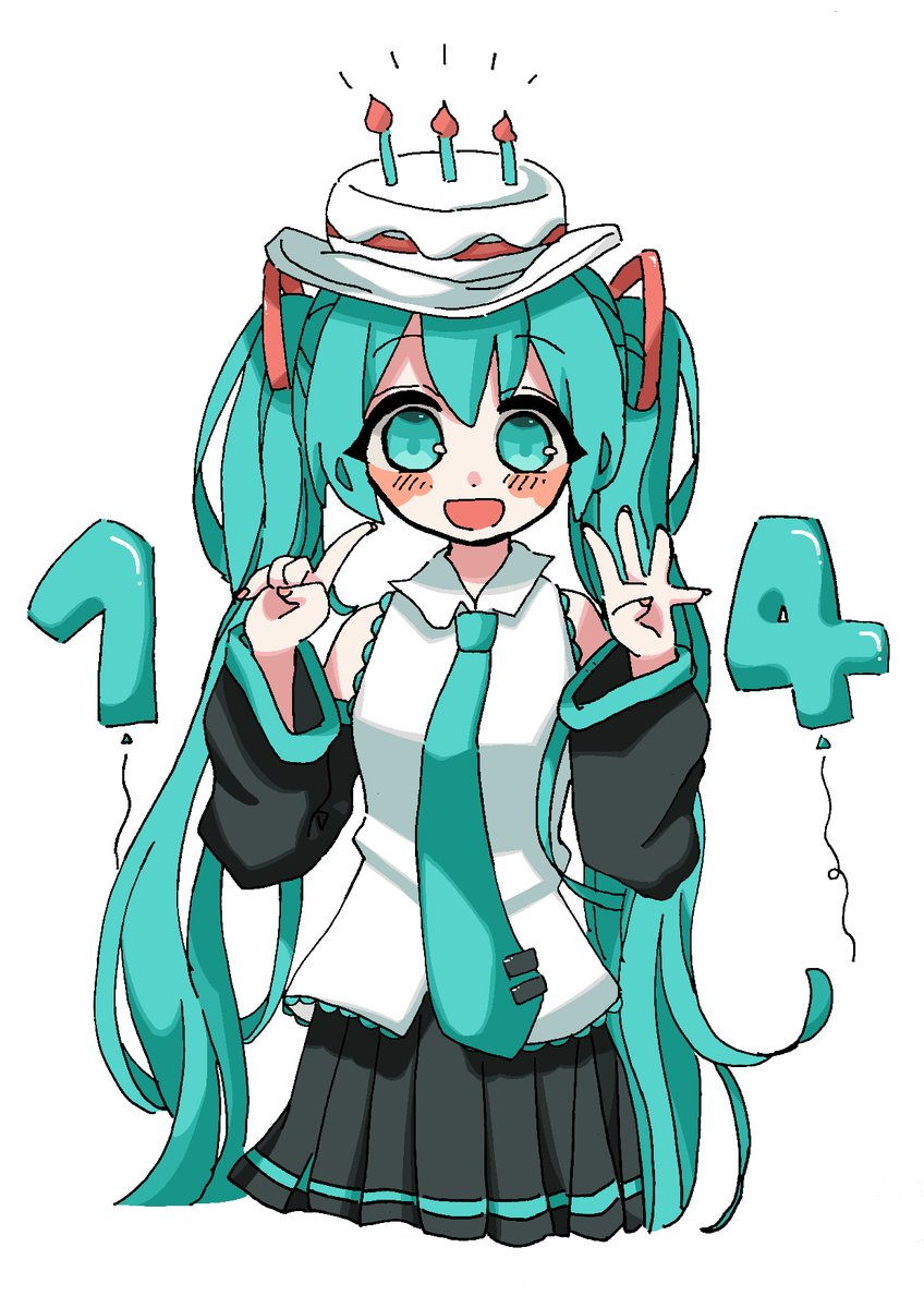 ミクちゃん。お誕生日おめでとう~~!! めっちゃ画像悪いけど、頑張ったから気にしないでね☆(線画検出したから) 14周年なんだ~ 私生まれる前からできてたんだねぇ… #初音ミク誕生祭2021 #初音ミク #デジタルイラスト #絵師さんと繋がりたい